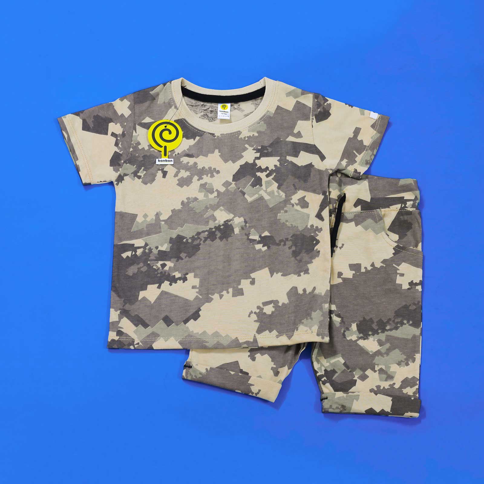 Enjoy your day with this soft cotton t-shirt matching prints with a super soft pair of shorts. The comfortable knitwear material makes sure you have a fun filled summer day.