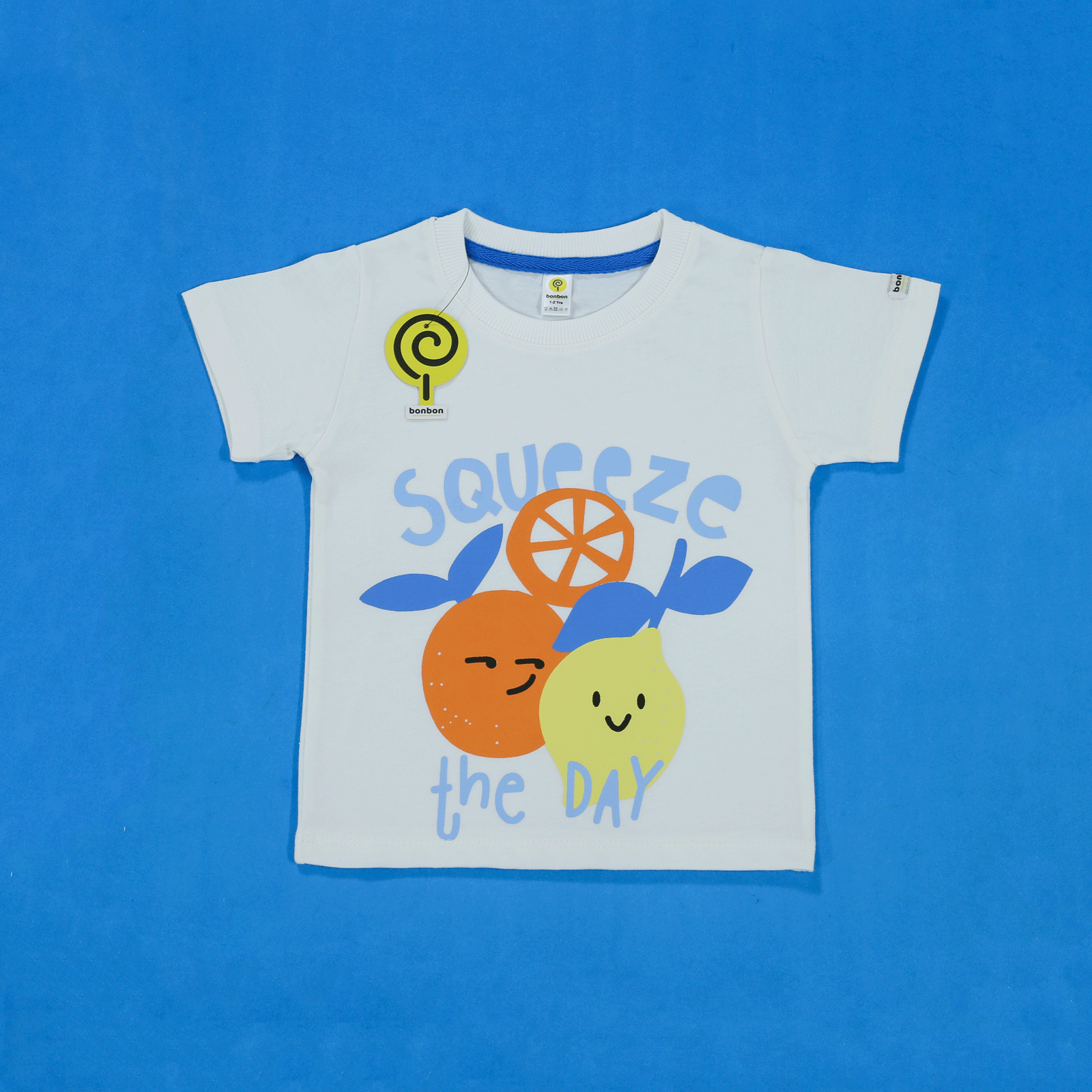 Squeeze the most out of your day with this playful white tee. Made with 100% soft cotton and featuring a ribbed neck, it's perfect for everyday wear. Plus, the high quality screen printing adds a touch of fun to any outfit.